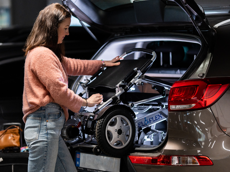 Le secret réside dans le fait qu’un fauteuil roulant électrique Eloflex pèse jusqu’à 80 % de moins qu’un fauteuil roulant électrique standard. De plus, il peut être plié et replié avec une seule main.