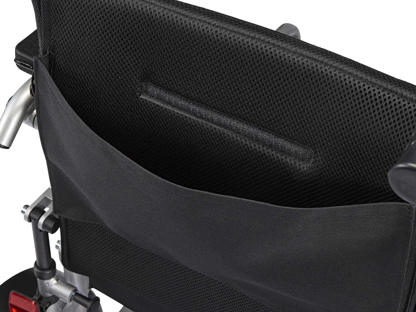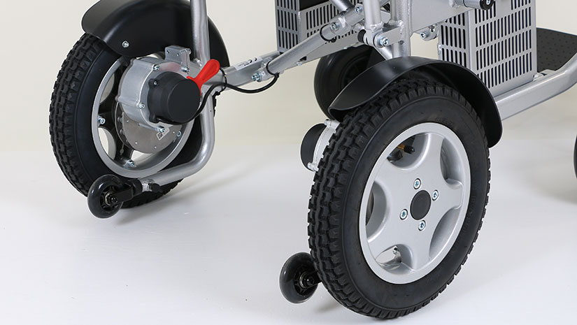 Situées à l’arrière du dossier, les poignées permettent à un membre de la famille ou à un soignant de pousser le fauteuil manuellement. Elles offrent également un excellent soutien si les utilisateurs souhaitent utiliser leur fauteuil roulant électrique comme déambulateur sur de courtes distances.